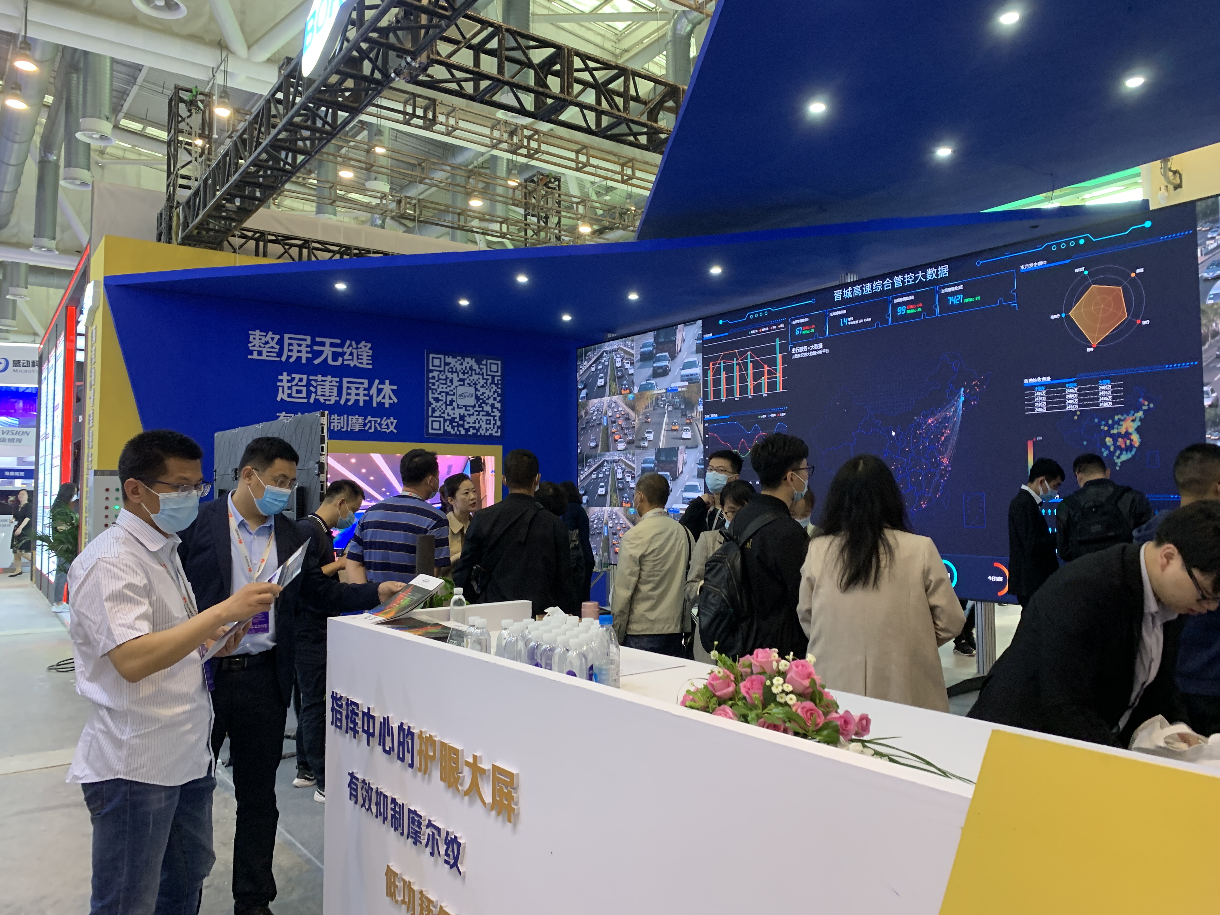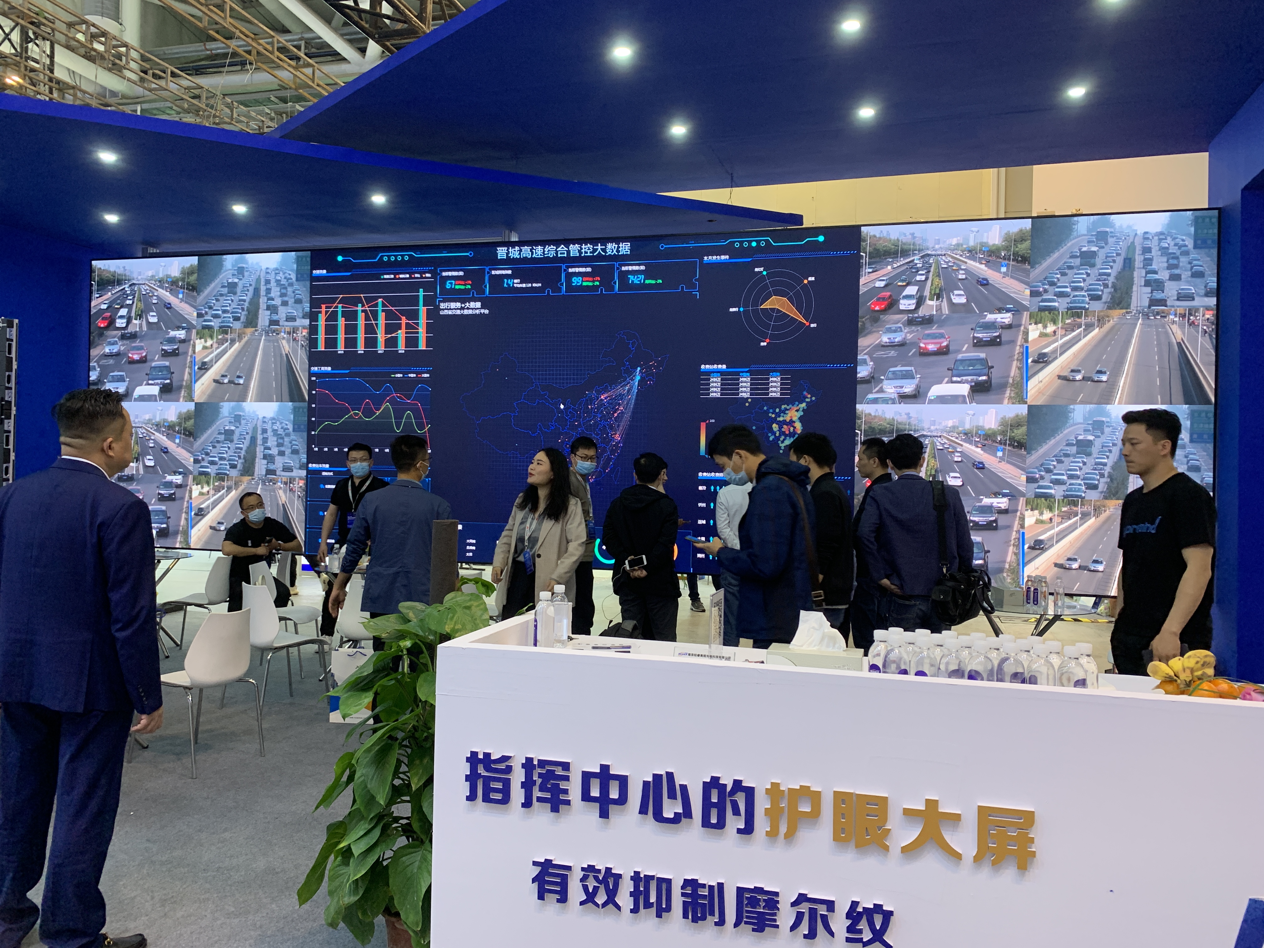 本次展會上鉑睿光電不僅展出了自己一系列新產品,更有一塊閃耀展會現(xiàn)場的鉑金大屏對高速公路信息化平臺做出了精細又舒適的內容展示。