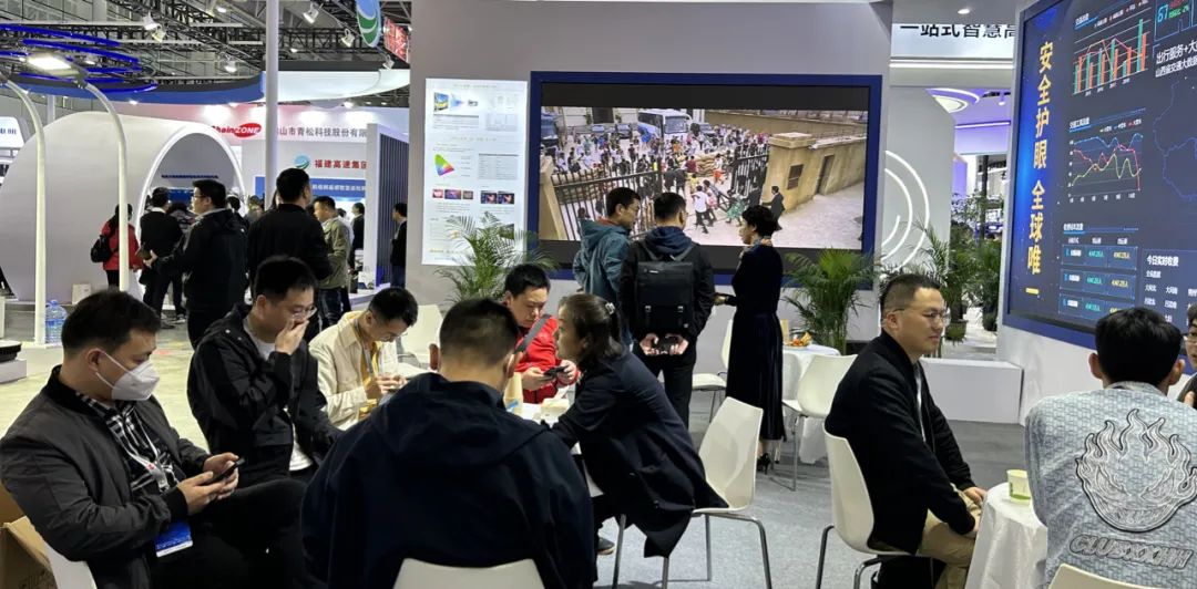 本次展會上玻顯投影以其出色的顯示效果,完整呈現(xiàn)了可視化智慧運營平臺強大而壯觀的數(shù)據(jù)化功能及監(jiān)控畫面,并同時呈現(xiàn)了令人沉醉的沉浸式影音播放效果。